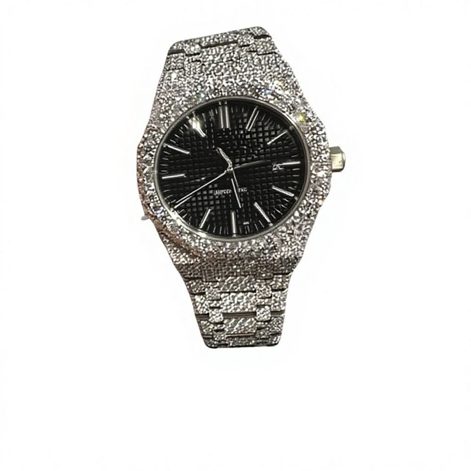 High Quality Fashion Gold Plated Luxury Mens Diamond Iced Out Custom Logo Quartz Watch with Stainless Steel Case and Glass Dial