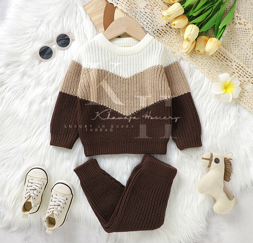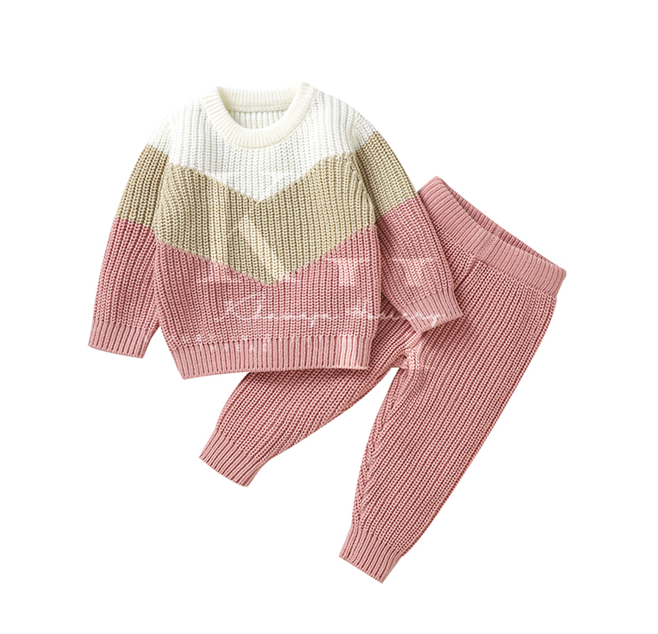 High Quality Fashion Knit Sweater Pants Set for Kids Comfortable & Stretchy 2-Piece Outfit with Custom OEM Logo Solid Pattern