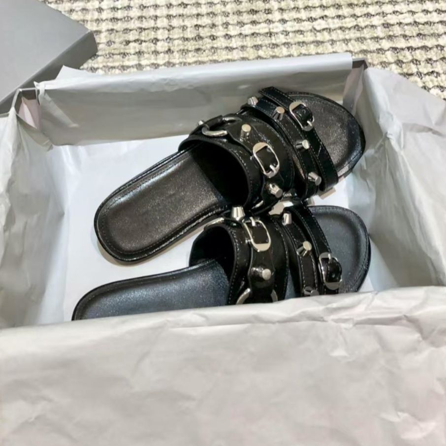 High Quality Fashion Summer New Metal Rivet Slippers Anti Slippery Two Strap Flip-flops Soft Thick Sole Women's Slides