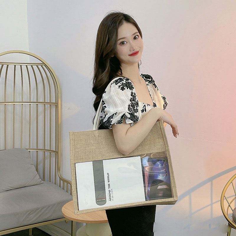 High Quality Fashion Waterproof Linen Natural Reusable Yellow Burlap Shopping Tote Jute Bag with PVC