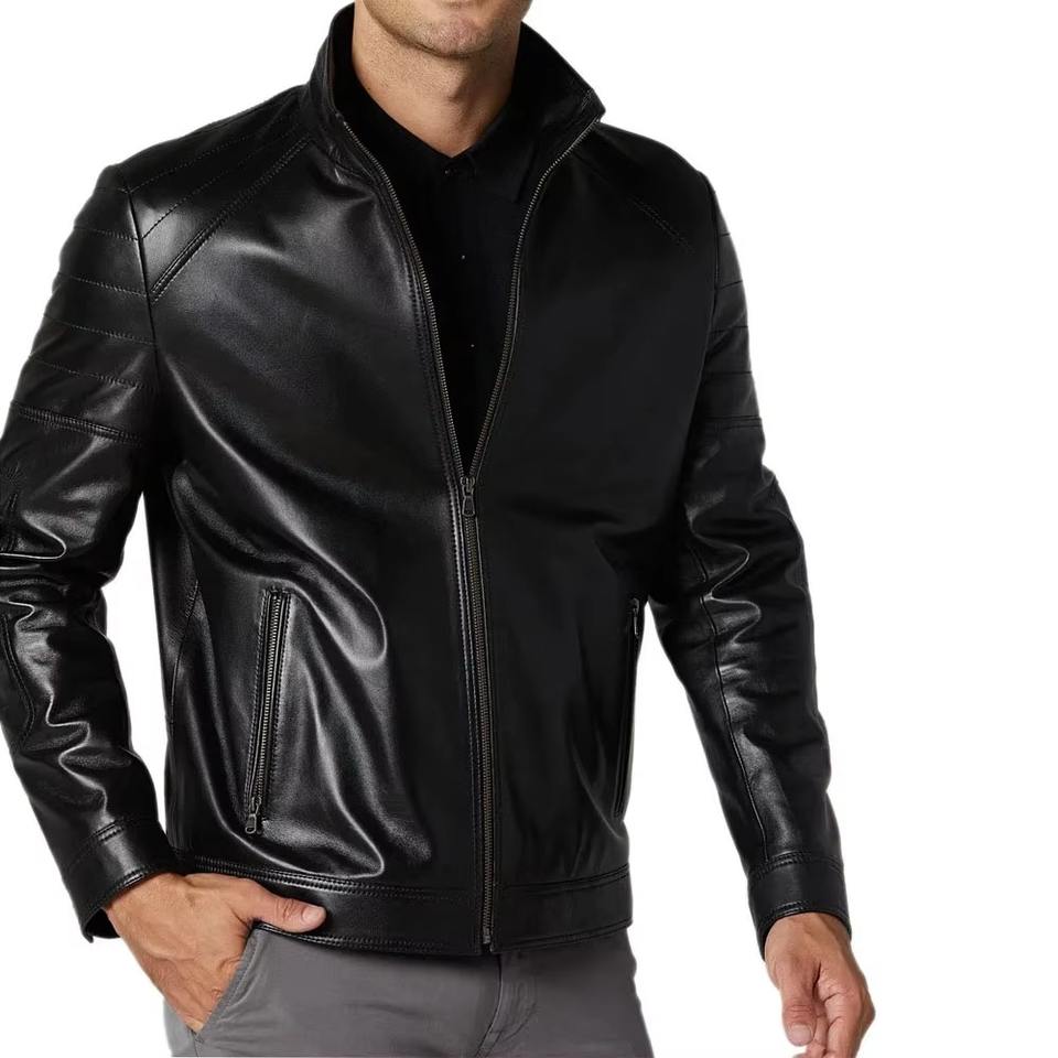 High Quality Fashionable Trendy Full Sleeve Men's Leather Jacket Comfortable Stand Front Formal Winter Coat jacket for men