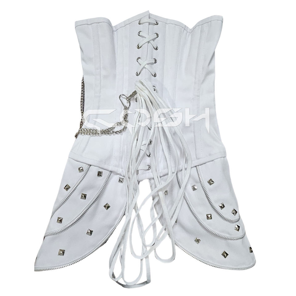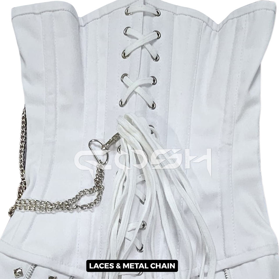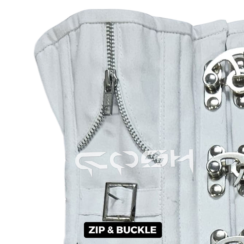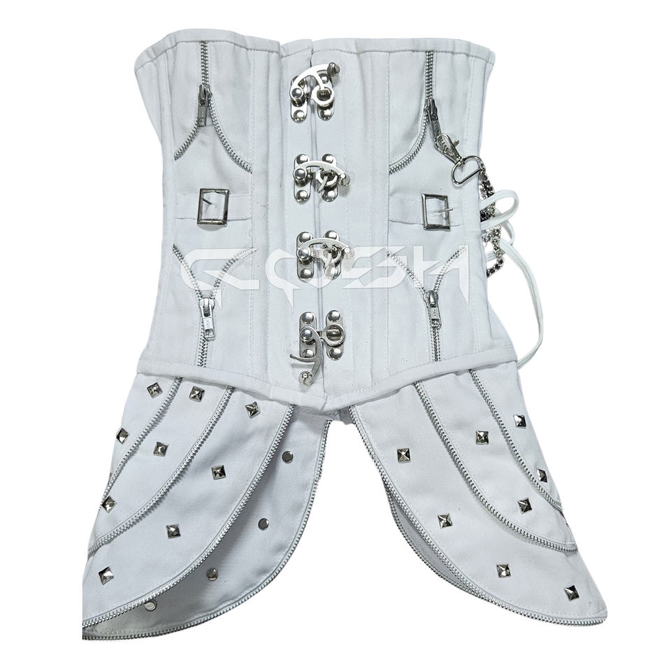 High Quality Fashionable White Corset with Decorative Zippers and Studs