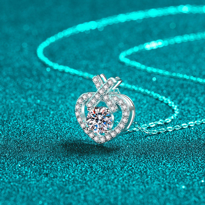 High Quality Fine Jewellery 925 Sterling Silver 1CT Moissanite Necklace Heart Charm Pendant Women's Fashion Necklace Gifts
