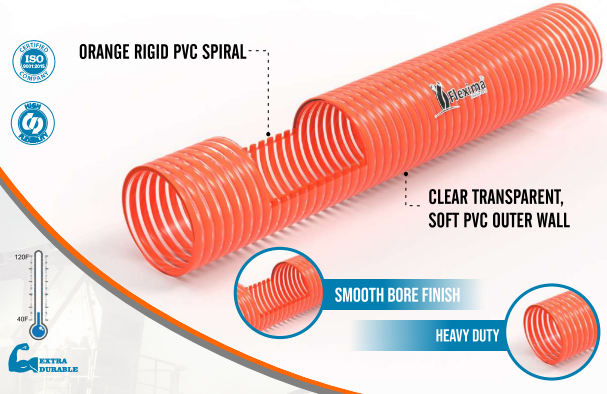 High Quality Flexima 10 Inch PVC High Pressure Flexible Helix Suction Hose Eco Friendly Durable ISO 9001 Certified Agricultural
