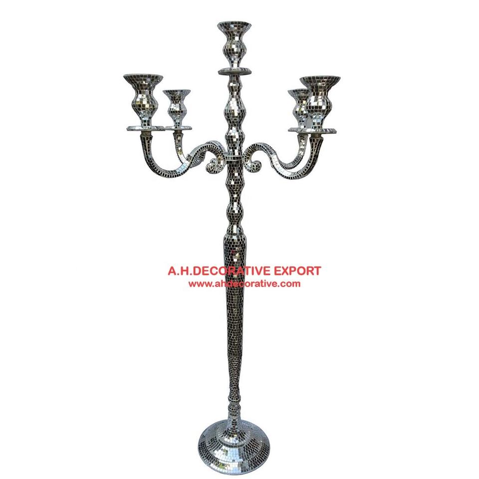 High Quality Floor Candelabra 5 Candle with Crystal Globe Aluminum Tall Party Centerpiece & Floor Decoration Handmade Candelabra