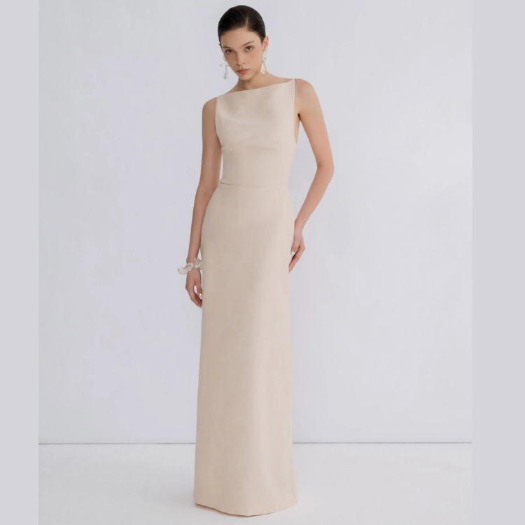 High Quality Formal Dress For Women MARGOT OPEN - BACK DRESS Long Dress 61%Rayon - 39%Cotton Fashion Women's Clothing White Ant
