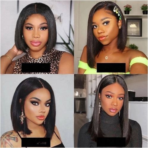 High Quality Front Lace Wig Women's Middle Point Bob Head Black Short Straight Hair Synthetic Fiber Wig