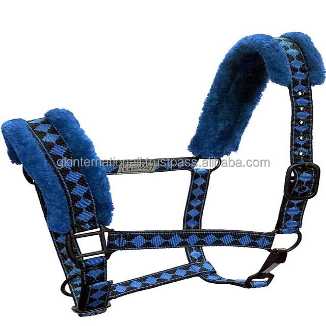 High Quality Full Horse Size Nylon Halter Luxury Black Coated Hardware and Colorful Fleece Mink Padded Nose and Crown