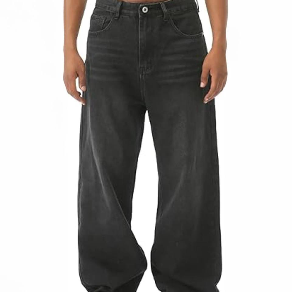 High Quality Full Length Flare Streetwear Loose Jeans For Men Wide Leg Baggy Fit Straight Full Length Flare Men's Jeans