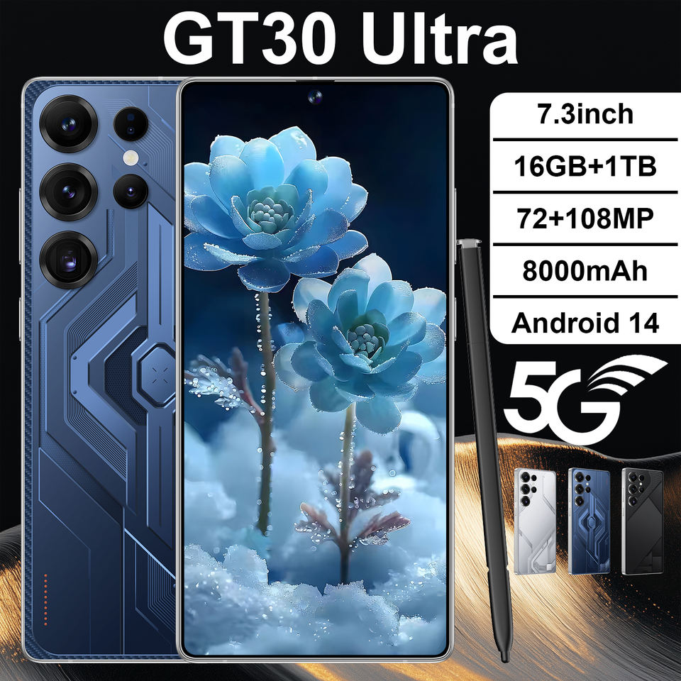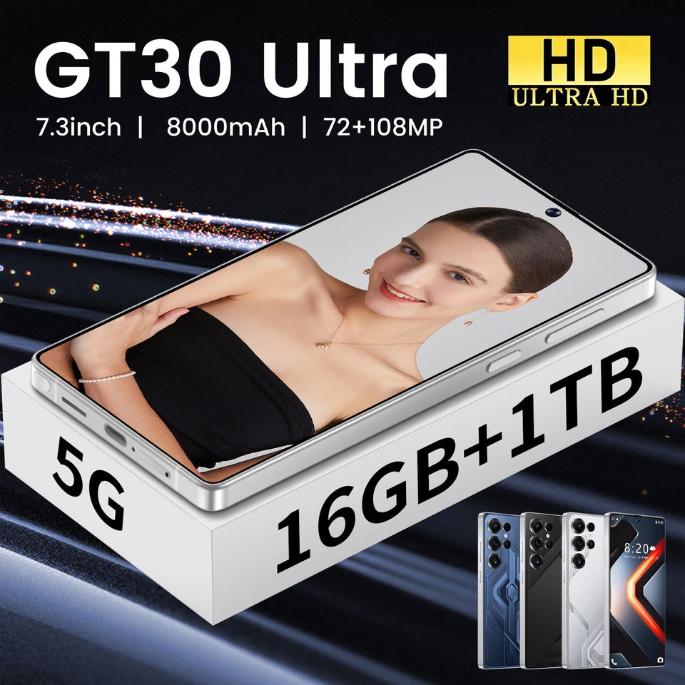 High Quality GT30 Ultra 5G LTE Hot Selling Smartphone Low Radiation 7.3inch HD 16GB+1TB Deca Core Dual SIM Facial Recognition