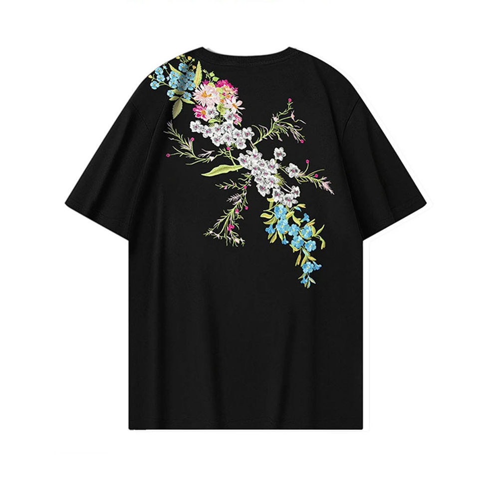 High Quality Garden Geisha Mount Fuji Cherry Blossom T-shirt Cotton Embroidery Graphic Tee Shirt Short Sleeve T Shirt For Men