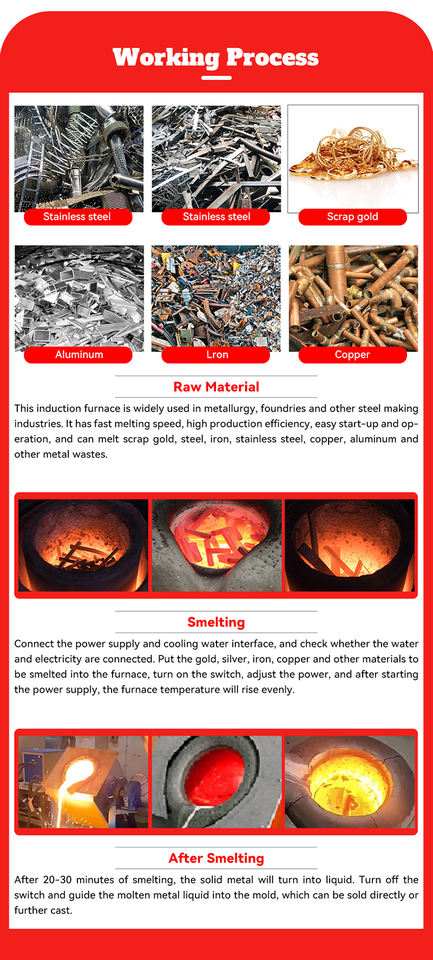 Melting Material:Scrap Steel Iron Gold Copper Aluminum