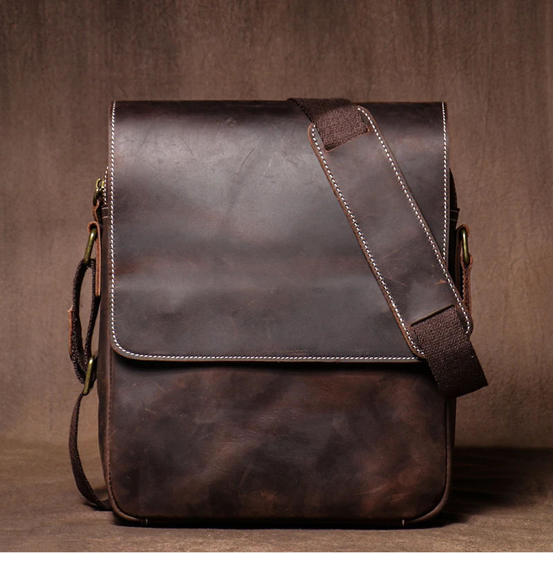 High Quality Genuine Cowhide Leather Men's Crossbody Bag Casual Vertical Style Sports Messenger Trend Tablet Computer Holder