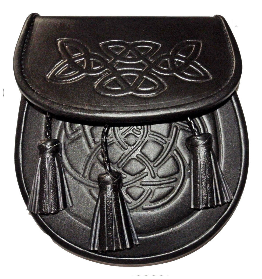 High Quality Adjustable Scottish Style Sporran Genuine Leather Bagpiper Kilt Sporran Highland Stainless Steel Wholesale Bulk