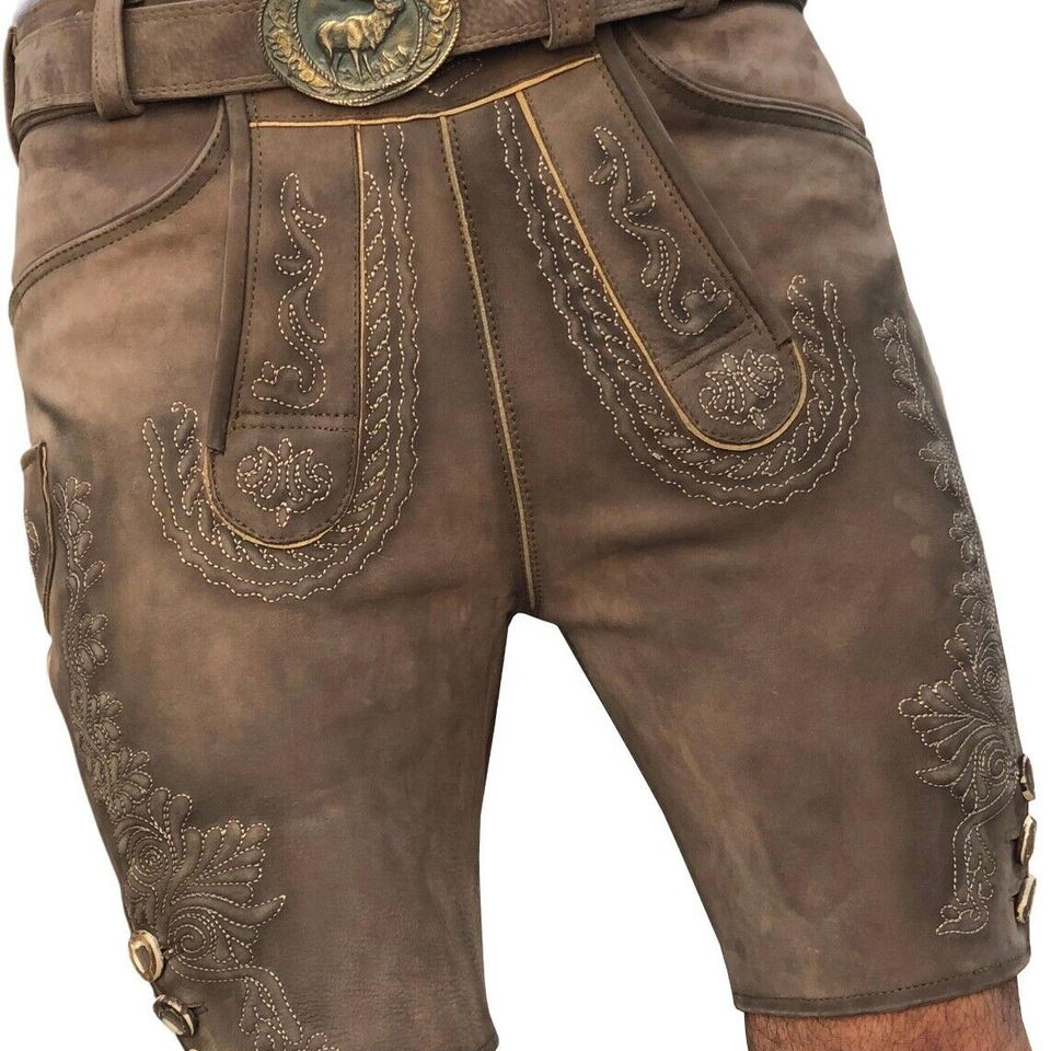 High Quality German Trachten Bavarian Lederhosen Oktoberfest Antique Kurz Goat Suede