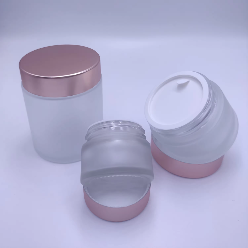 High Quality Glass Round Cream Container Jars with Rose Gold Lid
