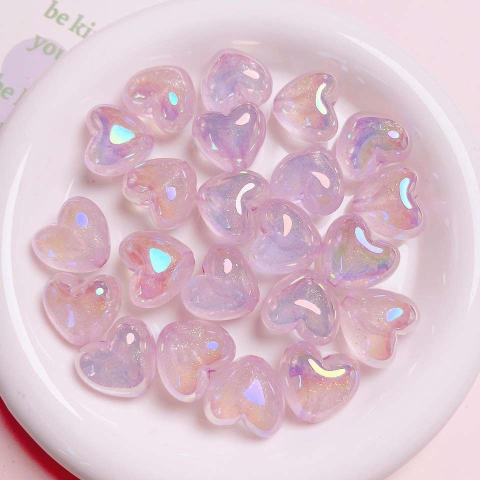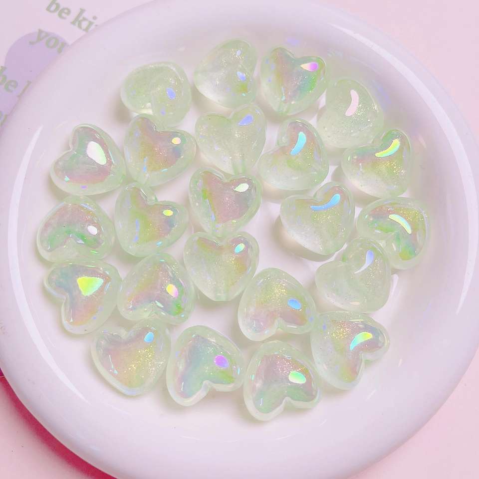 High-Quality Glitter UV Starry Night Glow Chubby Heart Beads DIY Craft Supplies for Phone Chains Keychains