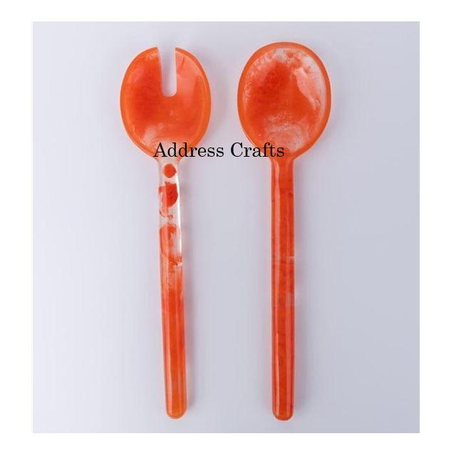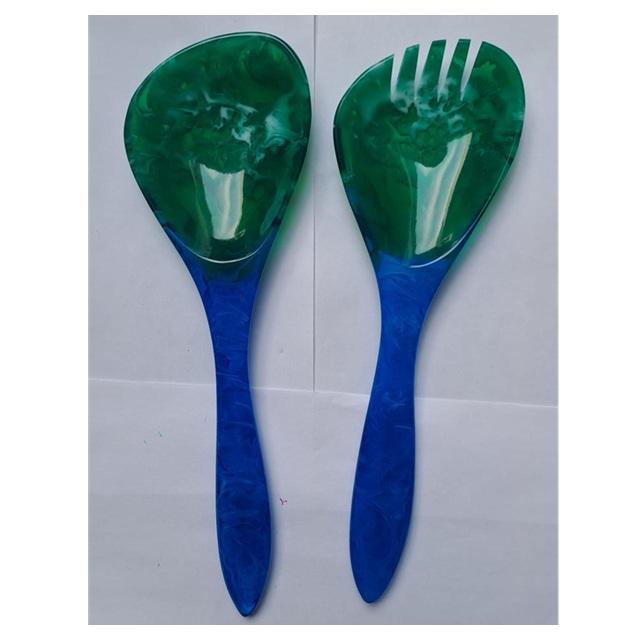 High Quality Glossy Finished Two Tone Resin Salad Server Set Kitchenware Resin Salad Tools Home Hotel Serving Spoon Fork Cutlery