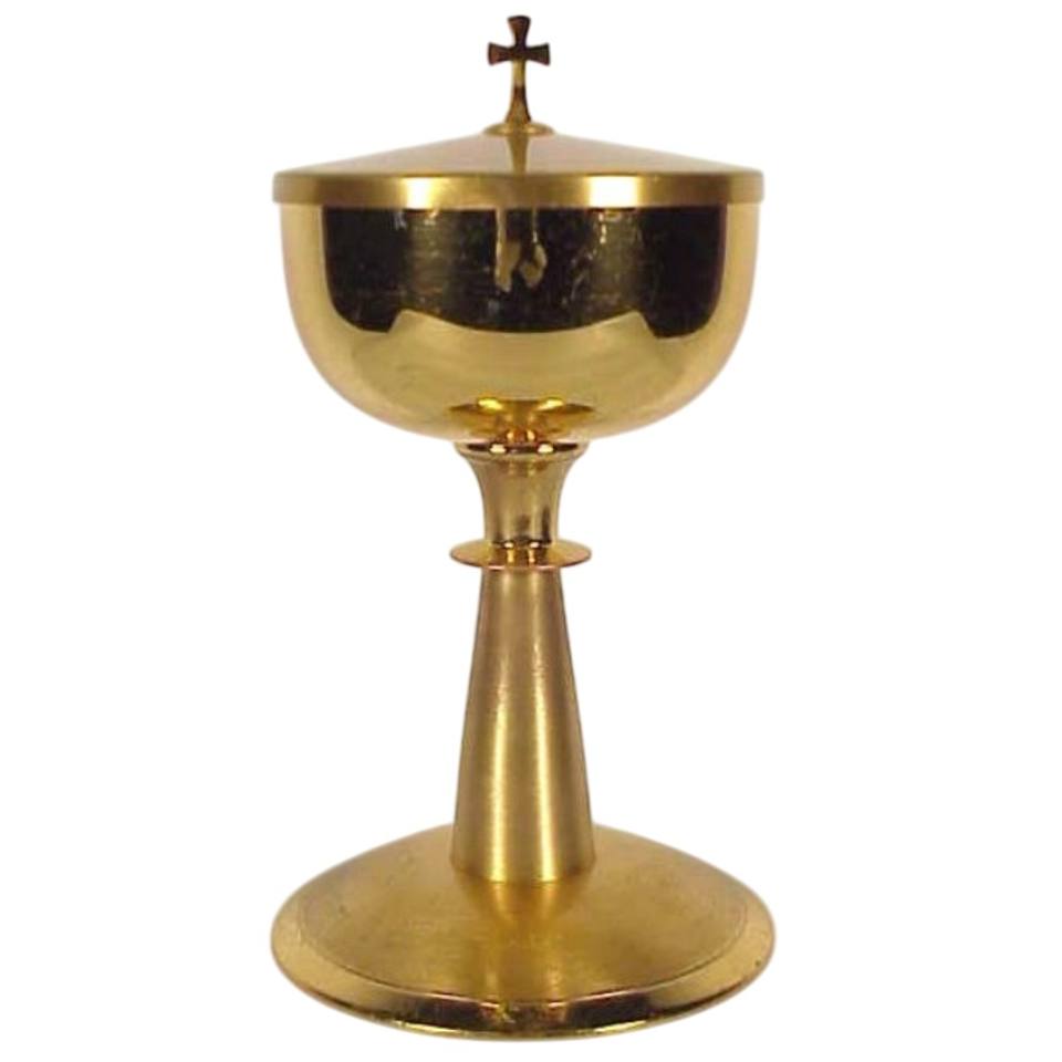 High Quality Gold And Silver Plated Brass Ciborium With Cross Detail And Dome Lid For Holy Communion And Altar Supplies
