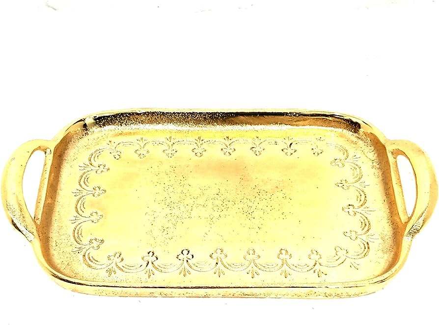 High Quality Gold-Colored Aluminium Leaf Rectangular Dish Plate Latest Floral Design Color Enamel Excellent for Home Use