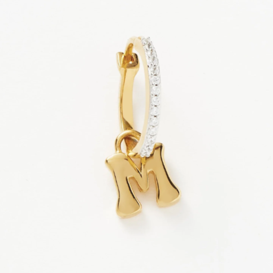 High Quality Gold Filled Initial M Charm Hoop Earrings Fashionable Alphabet Dainty Ear Jewelry