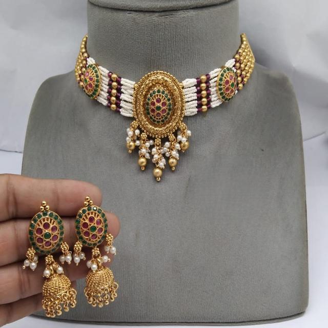 High Quality Gold Finish Designer Traditional Look Necklace Set With Earrings For Wedding Party Wear Collection For Women