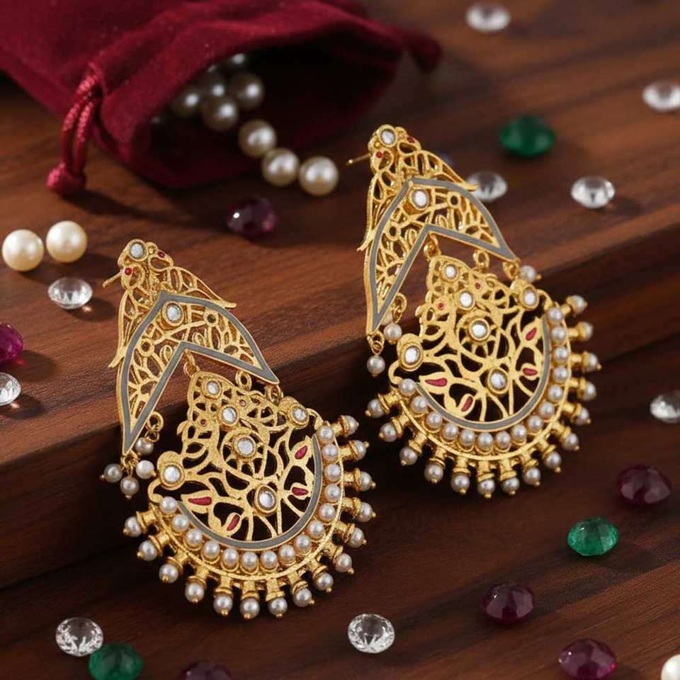 High Quality Gold Plated Filigree Chaandbali Earrings for Women Handcrafted Indian Jewelry for Wedding and Festive Wear