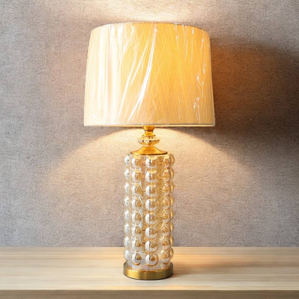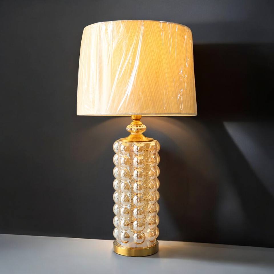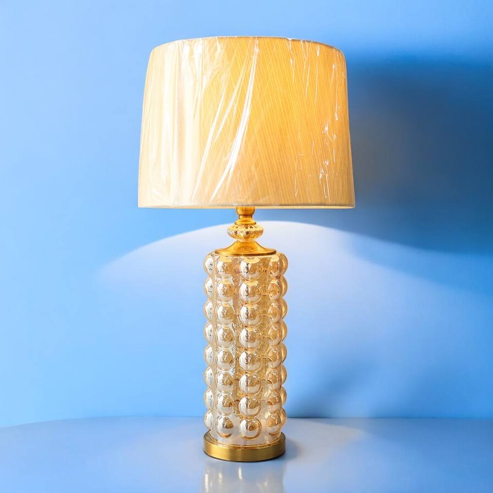 High Quality Golden Cylinder Shape Bubble Glass Table Lamps E27 Control Switch for Hotel Room Living Room Bedroom Decorative