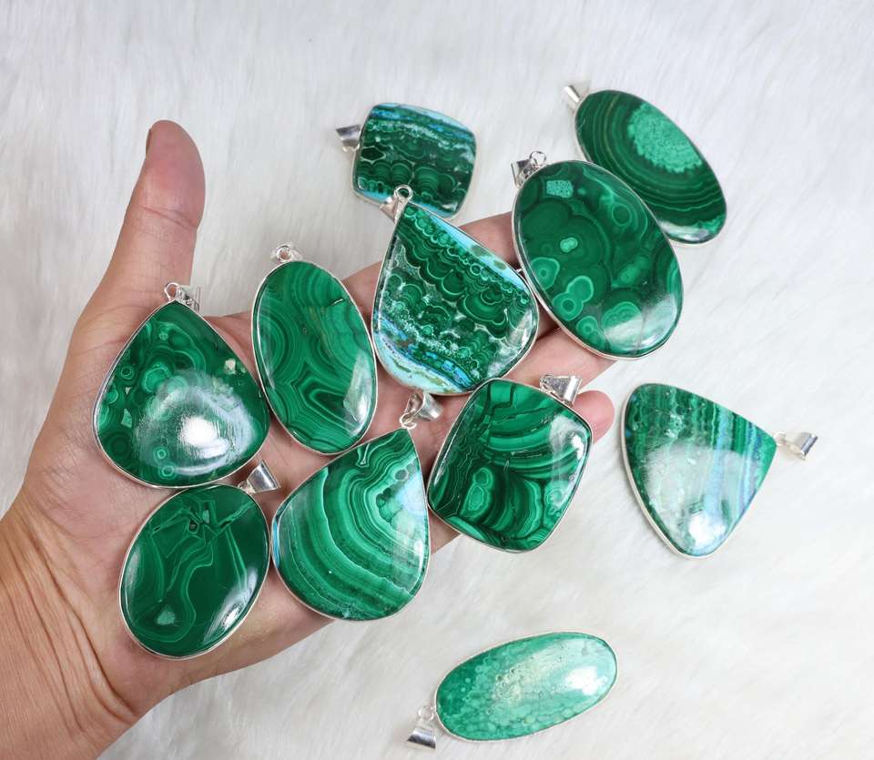 Product Name:Natural Chrysocolla Malachite Gemstone silver plated pendants