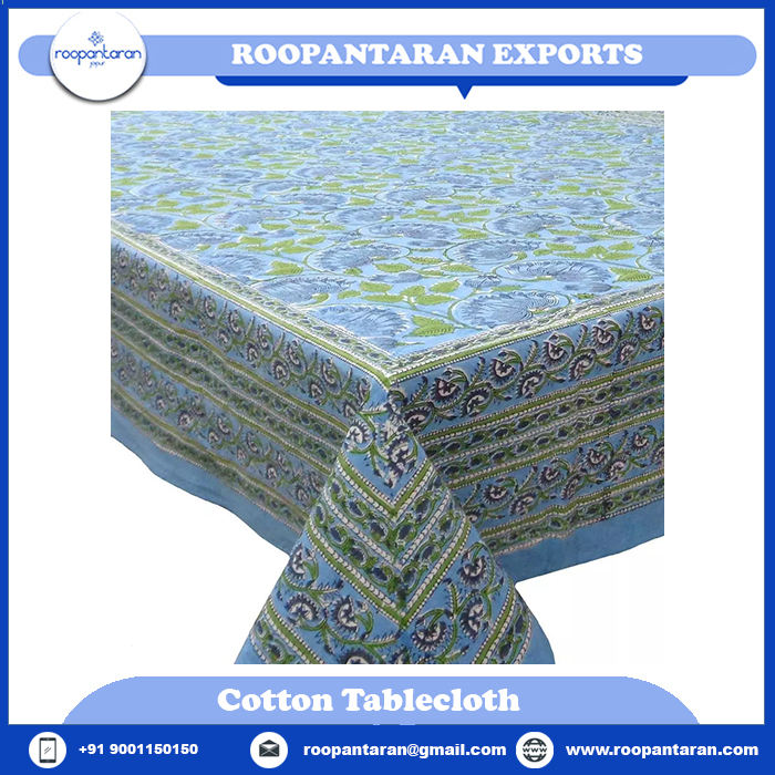 High Quality Hand Block Printed Cotton Wedding Tablecloth Indian Manufacturer Kamal Aqua Gud Handmade at an Price