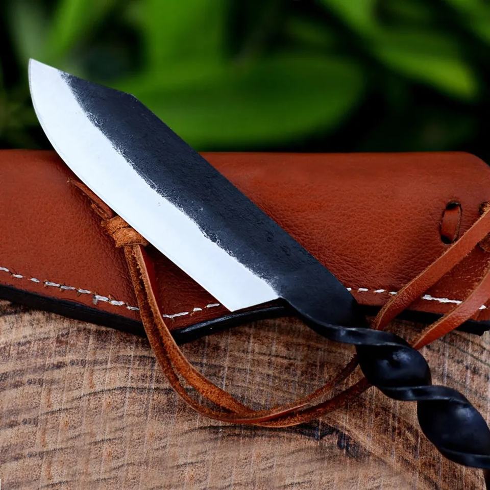 High Quality Hand Forged High Carbon Steel Antique Style Medieval Knife Full Tang Medieval Utility Knife With Leather Cover