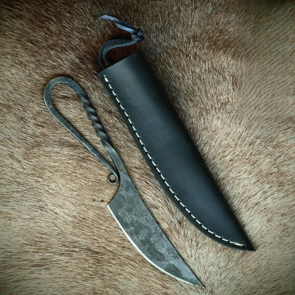 High Quality Hand Forged High Carbon Steel Antique Style Medieval Knife Full Tang Medieval Utility Knife With Leather Cover