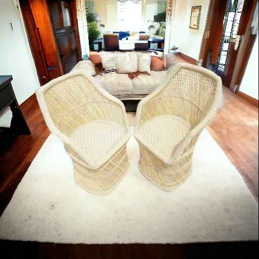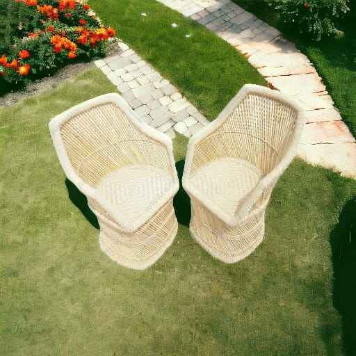 High Quality Hand Made Bamboo Rattan Armrest Sofa Chair Set of 2 for Living Room Dining Garden Chairs Furniture Set Bamboo Chair