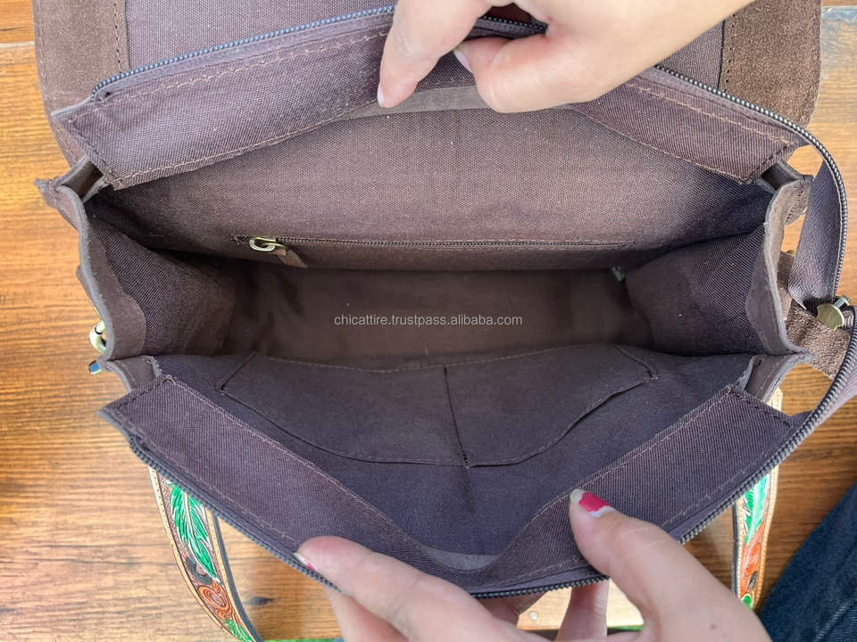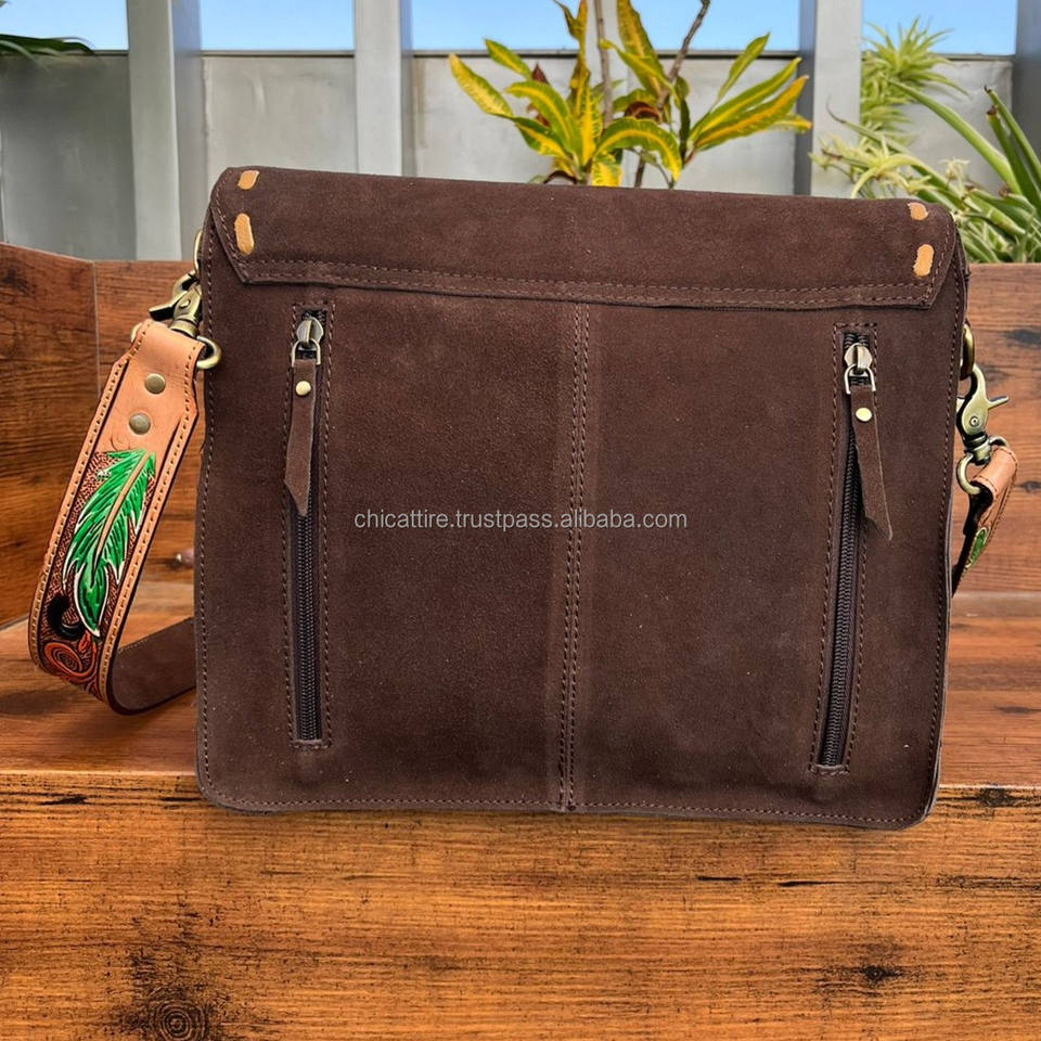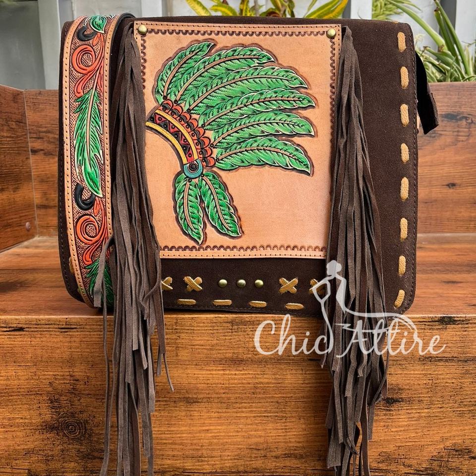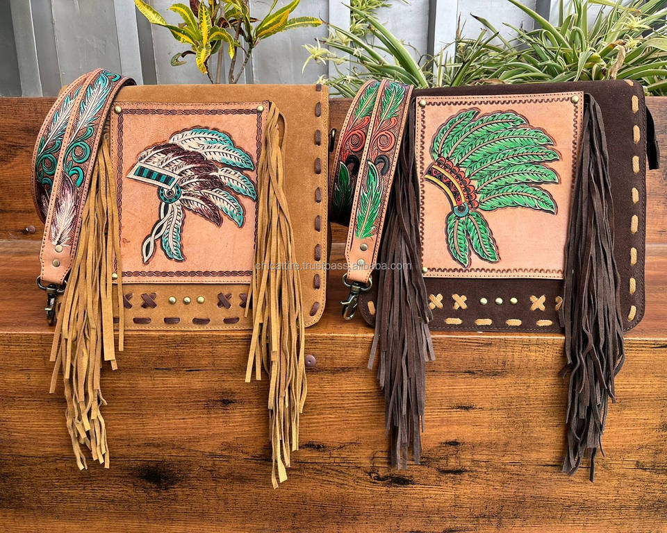 Product name:Hand Tooled Suede Leather Fringe Bag