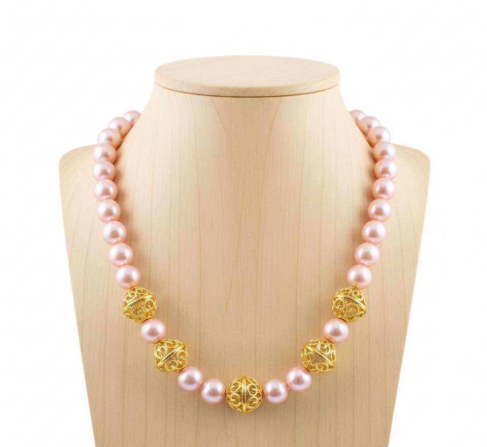High Quality Handcrafted Cultured Freshwater White/Gold Pearl Women's Classic Style AA/AAA Grade Third Party Certified Necklace