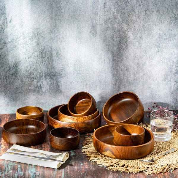 High Quality Customized Carved Salad Bowls Handcrafted Natural Wood Serving Bowl Set Highly Polished for Home for India Carton