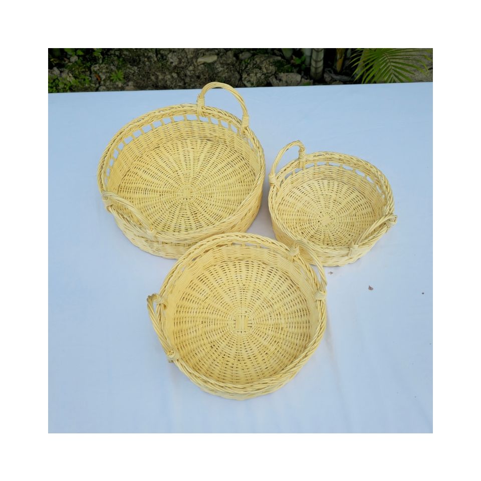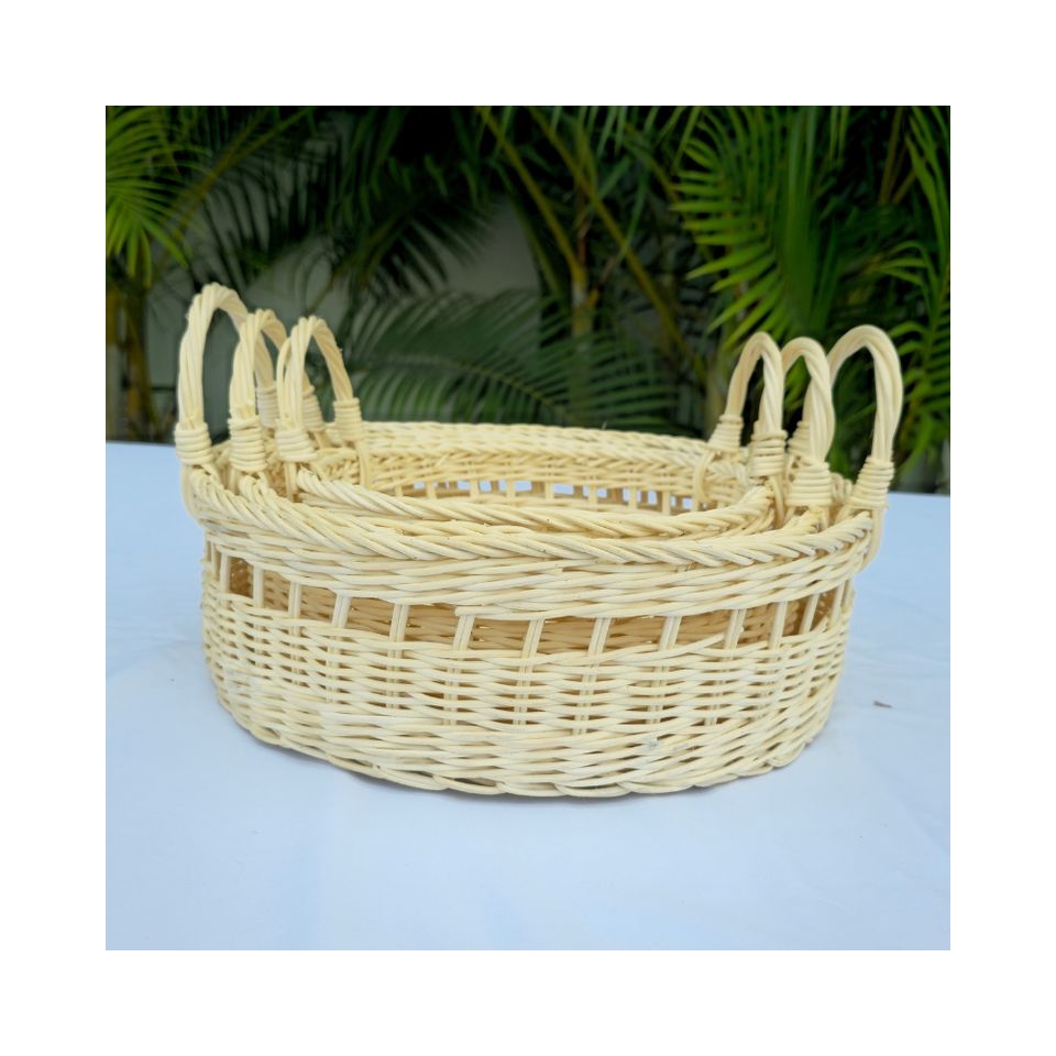 High Quality Handcrafted White Rattan Storage Basket with Handles Multifunction Kitchen & Home Decor Customizable Sizes S/M/L
