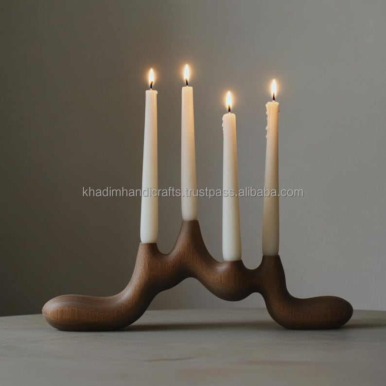 High Quality Handcrafted Wooden Tea Light Holder with Brass Inlay Design for Elegant Home Decoration and Festive Lighting