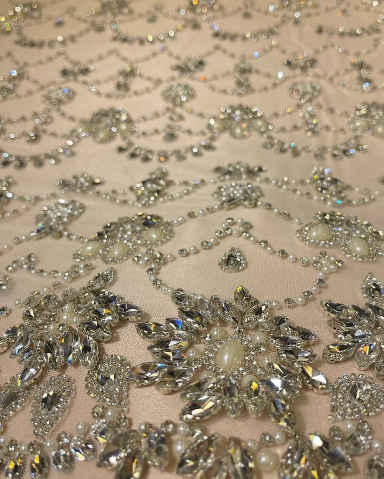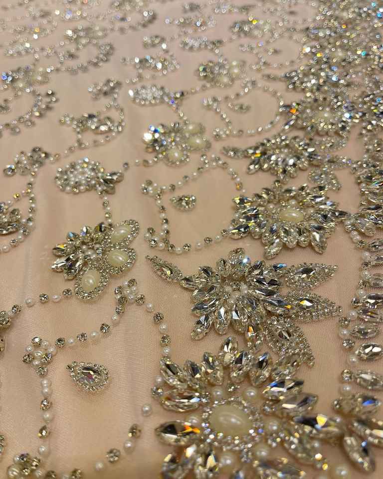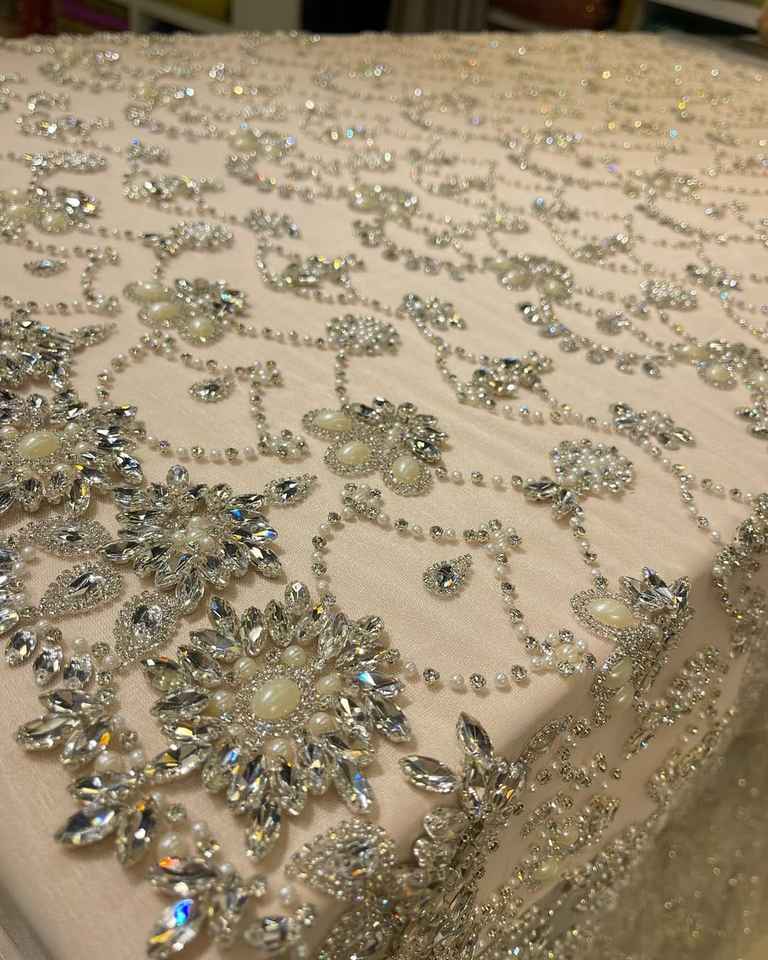 High Quality Handmade Beaded Embroidery Fabric with Sequins Crystal Stones and Rhinestones for Party Dress Wedding Gown Fashion