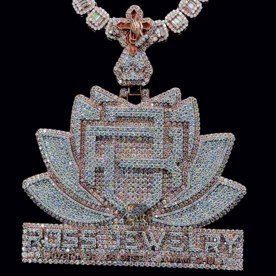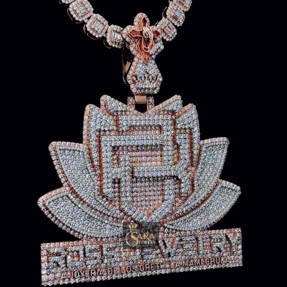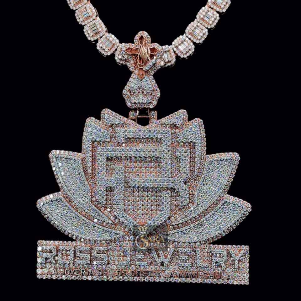 High Quality Handmade Custom FHB Lotus Studded Moissanite Diamond Pendant Hip Hop Style Fashion Jewelry