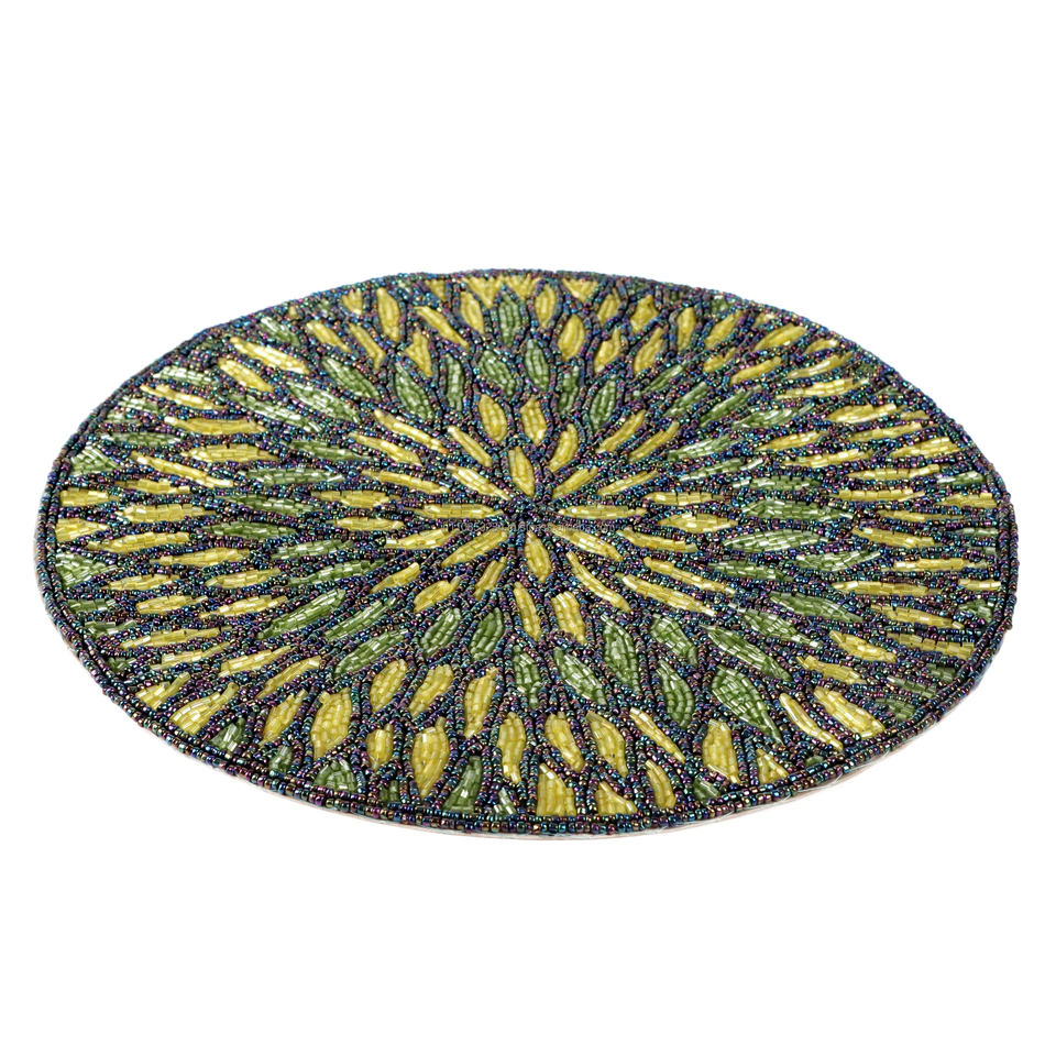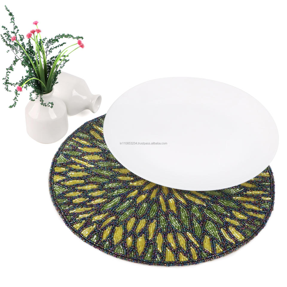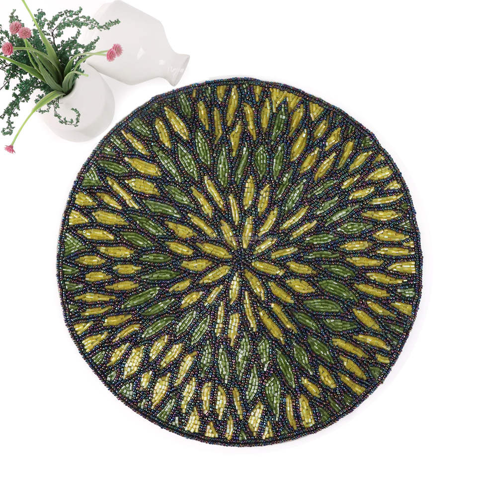 High Quality Handmade Embroidered Cloth Table Chair Pads Unique Leaf Design Glass Beads Luxury Style Available Wholesale Price