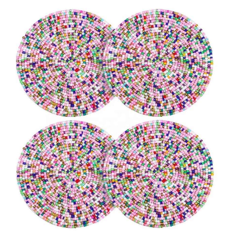 High Quality Handmade Glass Beads Coaster Set of 4 Beaded Drink Coasters 10cm Round Dining Table Wedding Party Decor
