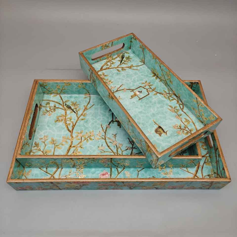 High Quality Handmade Indian Style Wooden Tray Ethnic Meena Printed Durable for Tea & Snacks at Low Prices