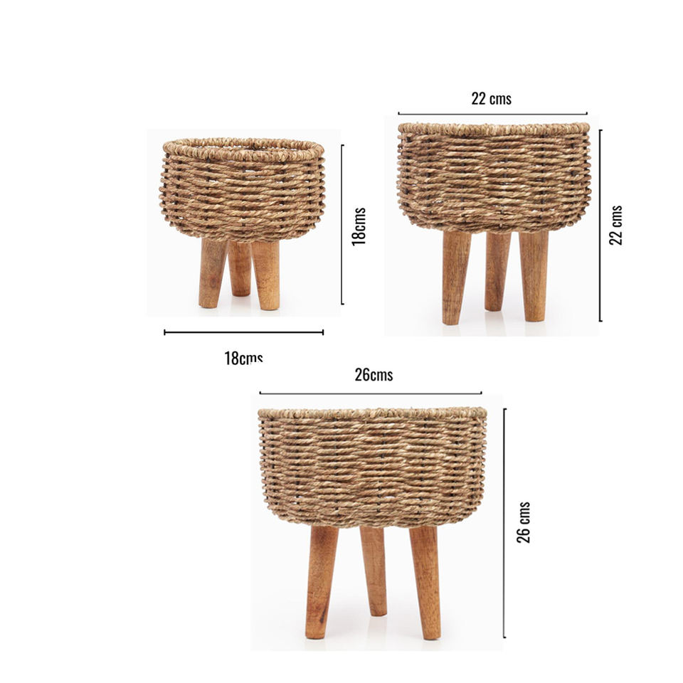 High Quality Handmade Jute Rope 2 Pcs Planter Set With Gold and Custom Color With Wooden Legs for Home & Garden Christmas Decor
