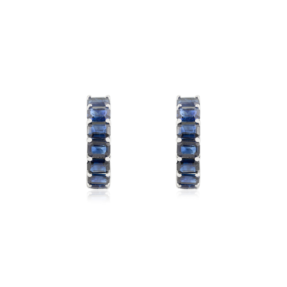 High Quality Handmade New Collection Blue Sapphire 14K Solid White Gold Small Hoop Earrings Customized Gemstone Jewelry