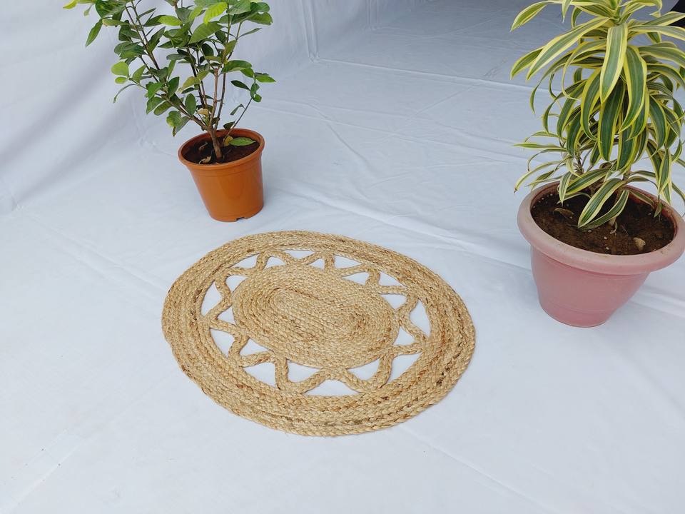 High Quality Handmade Oval Braided Jute Rug Luxury Embroidered Natural Carpet Mat for Home Hotel Office Decor