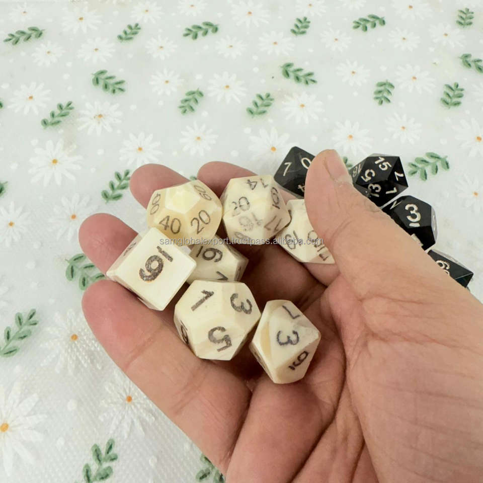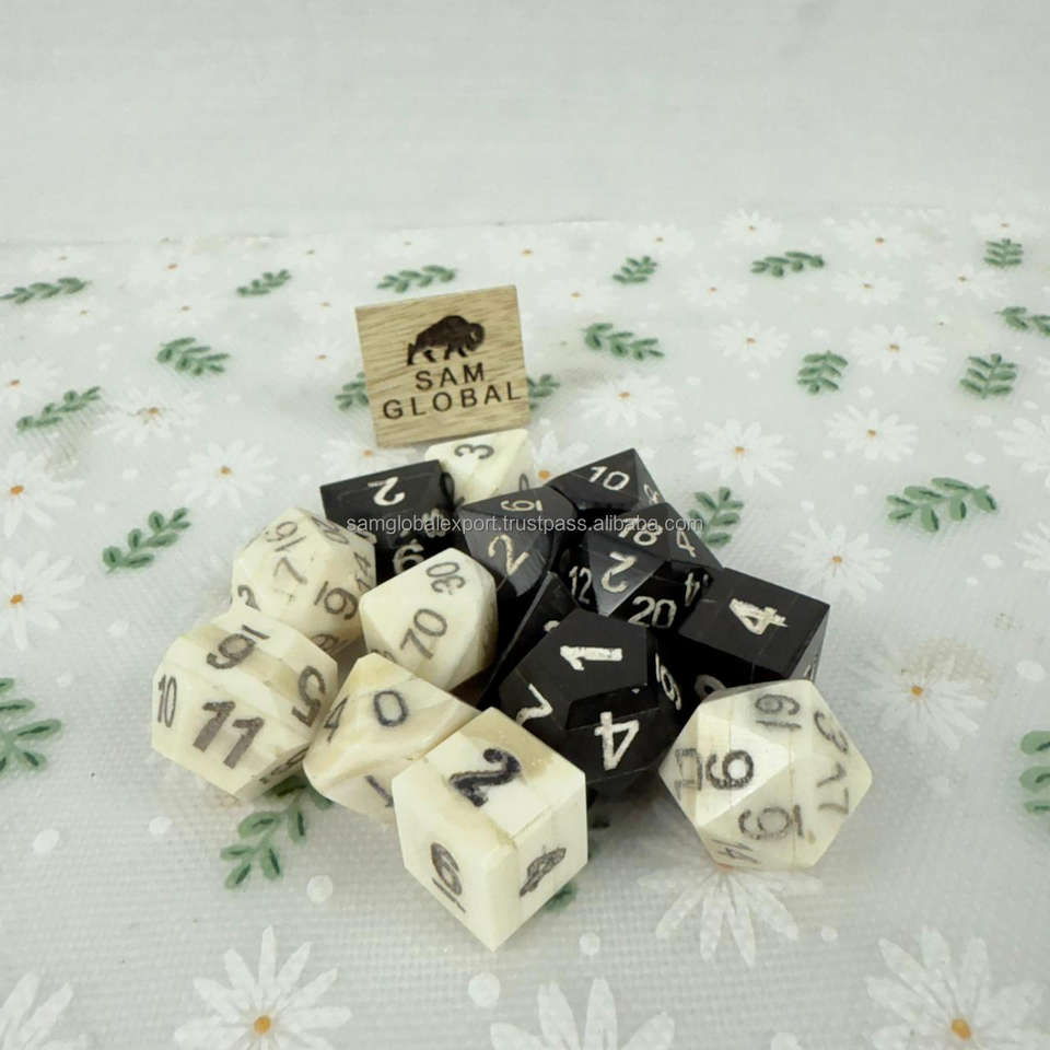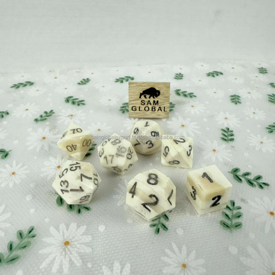High Quality Handmade Polished Buffalo Horn & Bone DND Dice 7-Piece Gaming Set Accurate Size Design 10-Sided