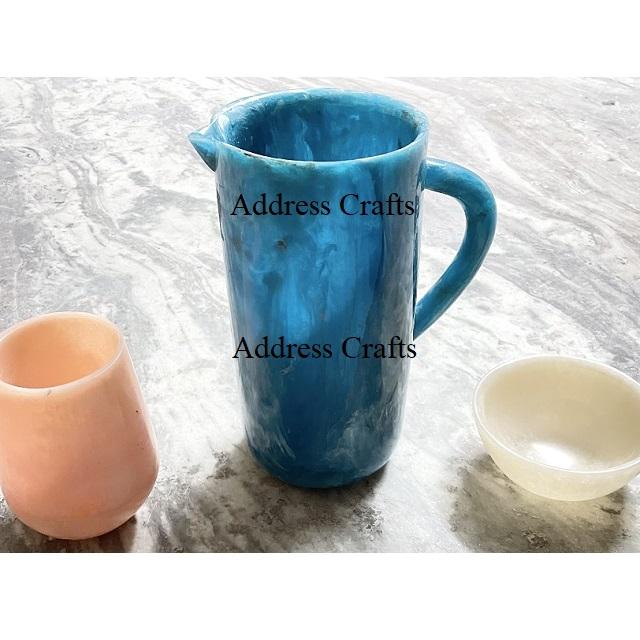 High Quality Handmade Resin Luxury Elegant Leak Proof Water Jug Pot Set Unique Design Swirl Cold Drinks Mugs Gift Box
