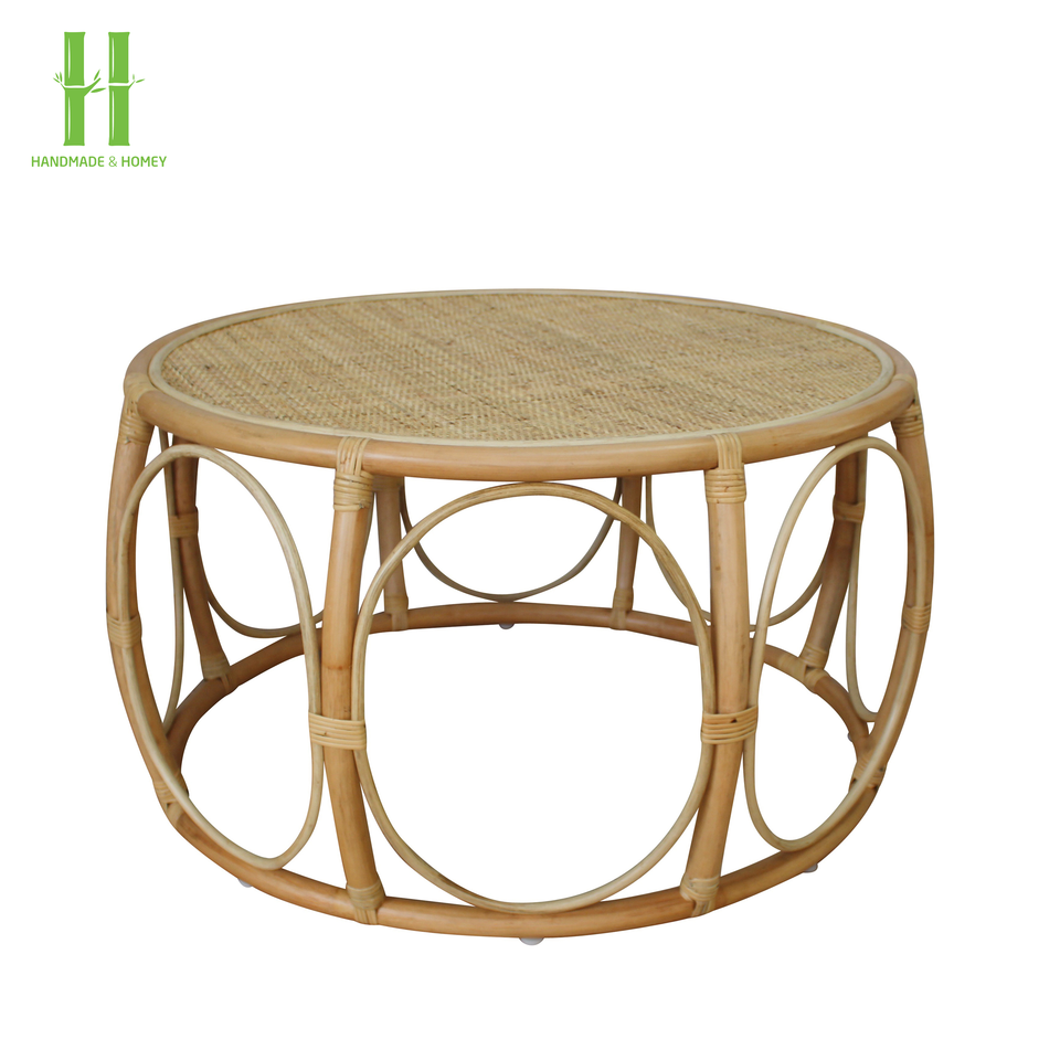 High Quality Handmade Rustic Rattan Round Table and Natural Rattan Home Furniture From Vietnam Handicraft