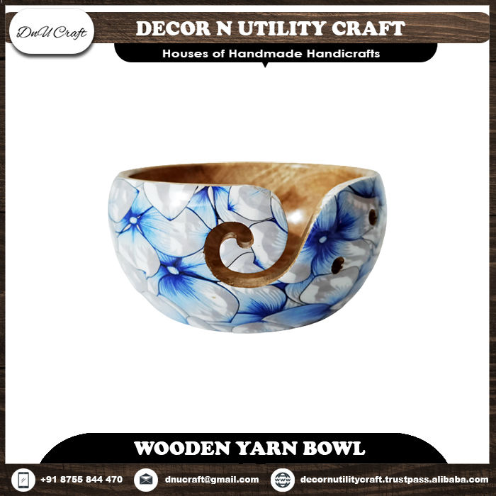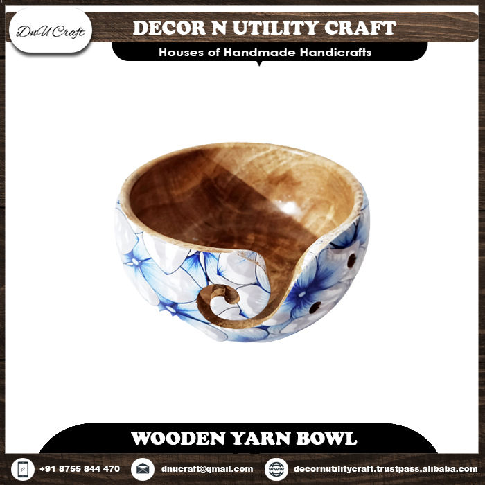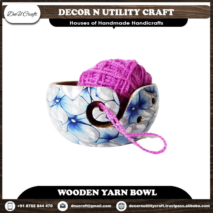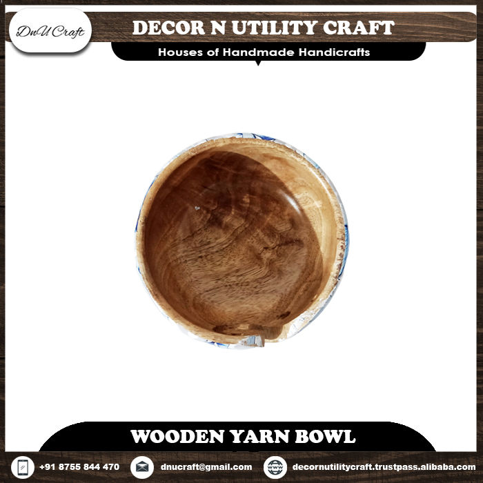 High Quality Eco-Friendly Customized Handmade Sheesham Wood Crochet Kit for Beginners Oval Pattern Yarn Bowl Multi-Colored Yarn